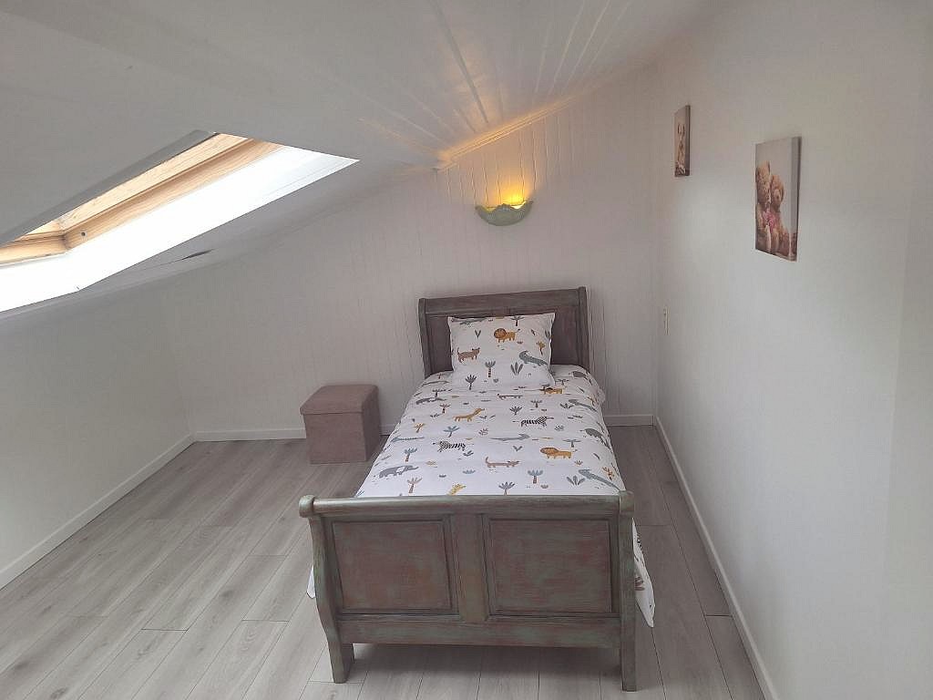 Cette maison de vacances, comporte au rez de chaussée, une grande pièce de vie avec cuisine entièrement équipée et salon équipé d’une télévision à écran plat, ainsi qu’une salle de bains avec douche. 2 chambres avec lit double et 1 chambre avec un lit simple offrent au total 5 couchages à l’étage.